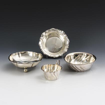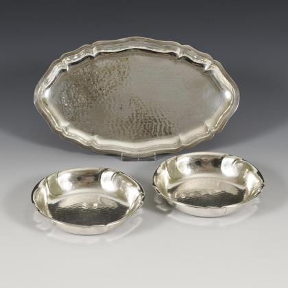 Small silver tray and 2 small bowls. Schwäbisch Gmünd.