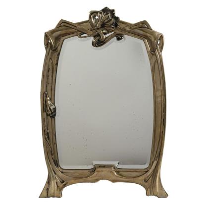 Geschweifte rechteckige Form mit vollem Profilrand. Punzen: Halbmond und Krone, Feingehalt, Fabrikmarke, Verkäufersignatur Elimeyer (Moritz Elimeyer, Dresden, Königlich-Sächsischer Hofjuwelier)