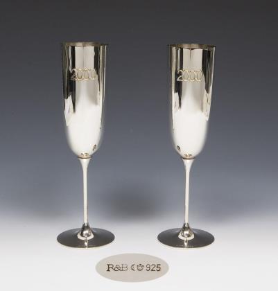 Pair of millennium champagne goblets. Robbe & Berking, Flensburg.