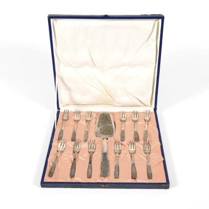 8 coffee spoons, 8 cake forks, butter and cheese knives. Wilkens & Sons, Hemelingen.