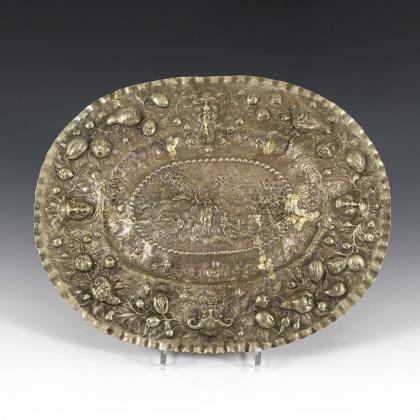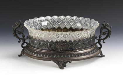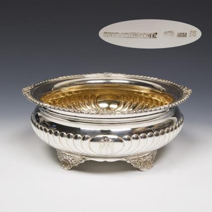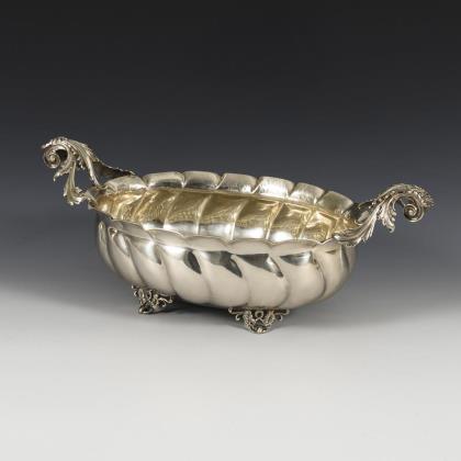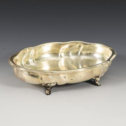 Oval silver bowl with fruit rim.