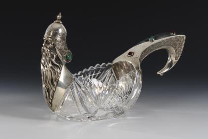 Extraordinary kovsch made of glass and silver.
