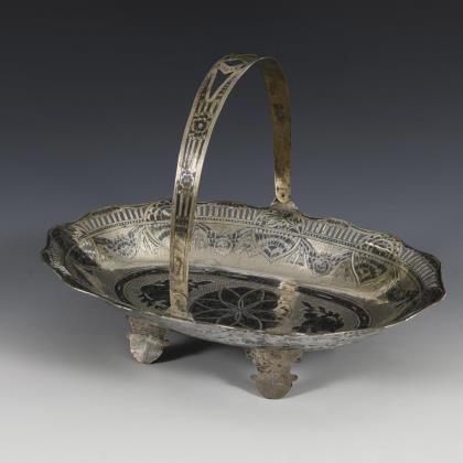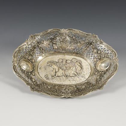 Large oval silver bowl with openwork rim.