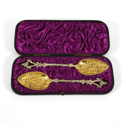 Convolute relief silver utensils for the coffee table.