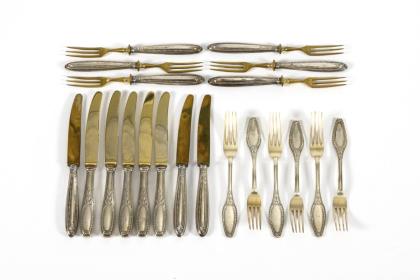 Mixed set of cutlery in relief around 1900.