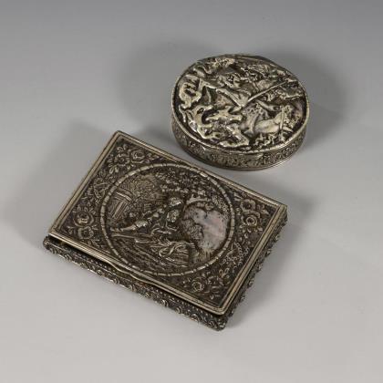 2 silver boxes in relief.
