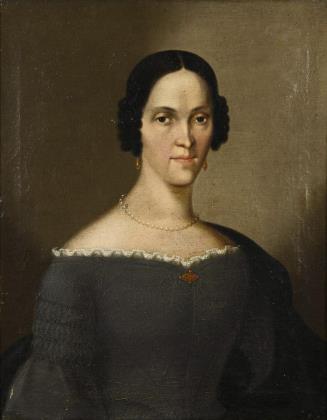 Portrait of a woman in a black dress with a finely painted lace hood