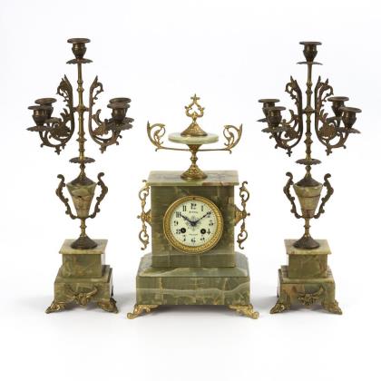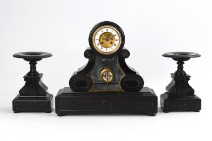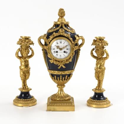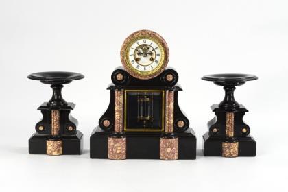 Elegante, hochwertig gearbeitete französische Vasenpendule mit 2 Beistellern.