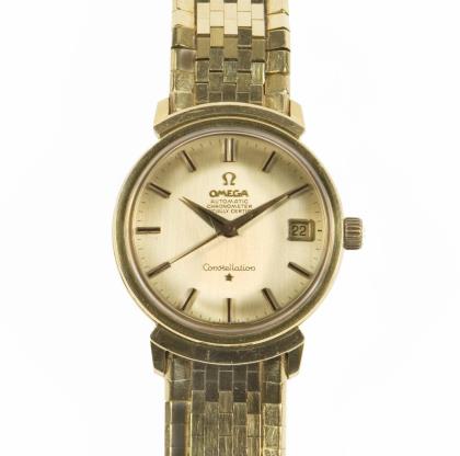 Officially Certified, Automatikwerk, Zifferblatt mit applizierten Strichmarkierungen, große Sekunde, Datum-Fenster. Original-Gold-Armband mit Faltschließe. Elegantes klassisches Modell in einer ausgefallenen Gehäuse-Form aus den Anfängen der Constellation-Produktion