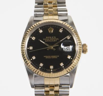 Superlative Chronometer Officially Certified. Automatikwerk, schwarzes Zifferblatt mit 10 Diamanten, große Sekunde, Datum-Fenster mit Lupe. Original-Jubilé-Armband mit Faltschließe. Grünes Rolex-Etui, Internationale Service-Garantiekarte, grünes Rolex-Kartenetui, Chronometer-Garantieschein W 366741 mit Stempel von Gerhard D. Wempe, Frankfurt am Main 1995. Service durch Wempe am 13.07.2021