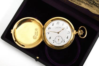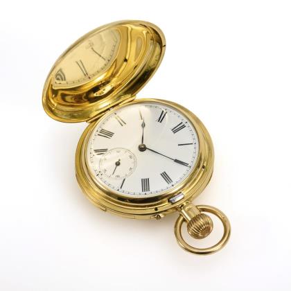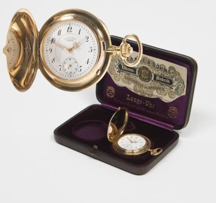 Goldene Sprungdeckeluhr mit Minutenrepetition 750 GG.