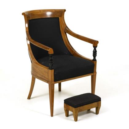 Biedermeier armchair and upholstered stool.