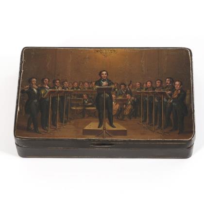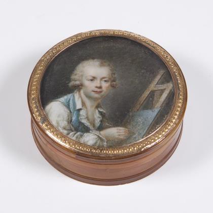 Verglaster Deckel mit fein gemaltem Bildnis "Der Künstler vor der Staffelei", unsigniert. Innen Reste eines alten Klebezettels