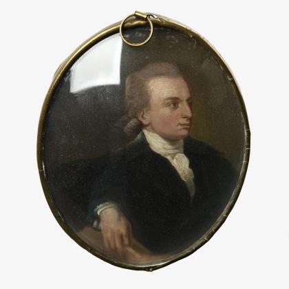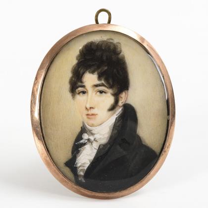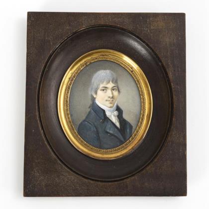 Empire miniature: Portrait of a man in a medallion with velvet ribbon.