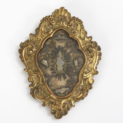 859/ Barocke Klosterarbeit in vergoldetem Kupferrahmen.