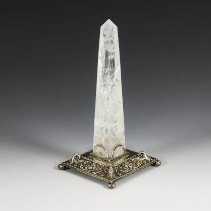 Rock crystal petshaft without engraving. Bell with engraved "N" in carnelian. Pet shafts with wooden handles: "H.G.", engraved maltster's coat of arms or guild mark. Bone typar with floral engraving. Gilt box marked "E. Vagnozzi Roma", with the alliance coat of arms on the lid. Leather case with pearl embroidery and gold embossing on one side