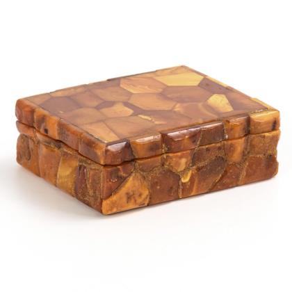 Incrusted with engraved ivory on all sides and on the hinged lid; glazed portrait on the lid; green velvet inside