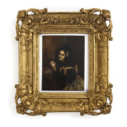Hip portrait inscribed with the monogram KM in a gold stucco frame. / Portrait inscribed Daffinger. / Hip portrait of Marie Antoinette in a brass frame