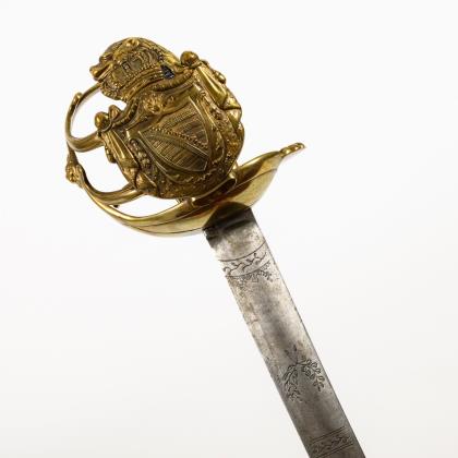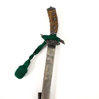 Epaulettenpaar mit Goldstickerei und sächsischen Wappen auf dem Knopf, Paar Schulterstücken , 3 Eichenlaub-Applikationen, Große Gürtelschnalle mit bekröntem Monogramm EI und CS (eventuell Sachsen-Coburg). Dazu ein Schulterstück des Schützen-(Füsilier-)Regiment „Prinz Georg“ (Königlich Sächsisches) Nr. 108