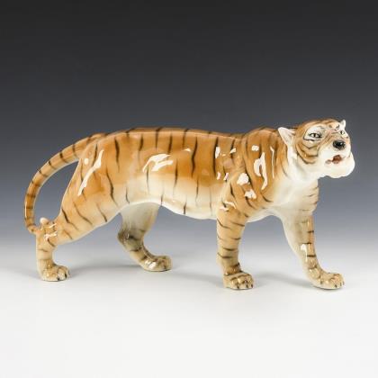 Striding tiger. Viennese manufactory Friedrich Goldscheider.
