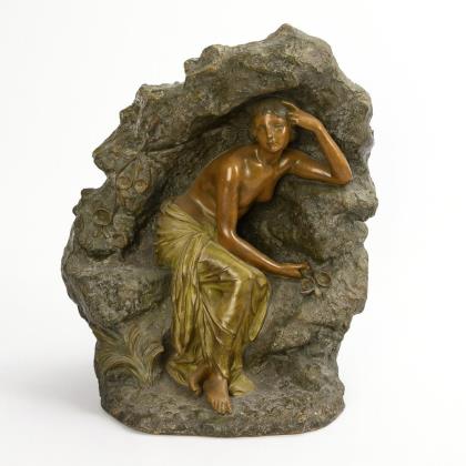 Art Nouveau girl as allegory "The Summer". Viennese art ceramic workshops.