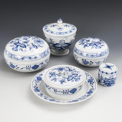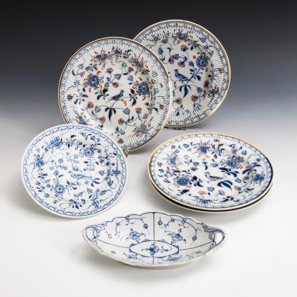 5 onion pattern porcelains "Royal colorful". Meissen.