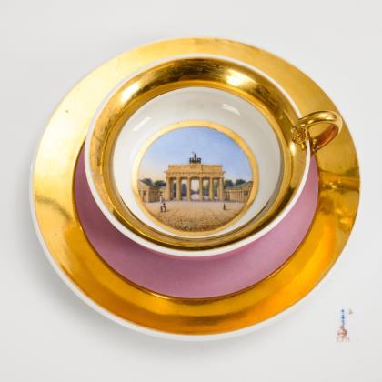 Radierte Bezeichnung im Goldrahmen "Das Brandenburger Thor in Berlin".