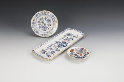 Onion pattern royal cake plate, plate and confectionery bowl "Royal colorful". Meissen.