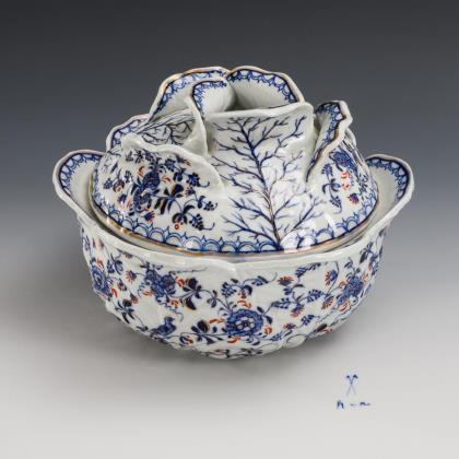 Fan-shaped bowl, vase and centerpiece. Meissen.