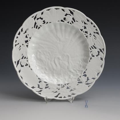 Rare pierced plate with swan service relief. Meissen.