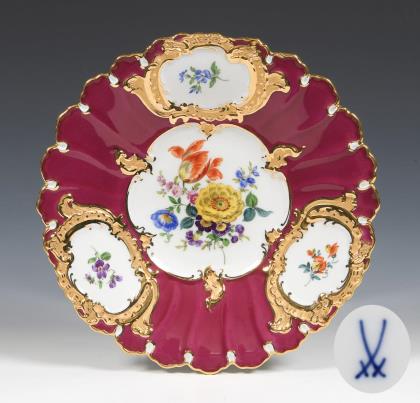 Magnificent bowl with purple ground. Meissen.