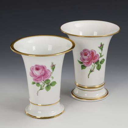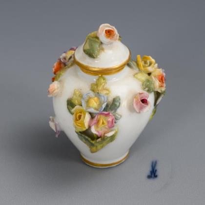 Crater vase and lidded bowl "Red Rose". Meissen.