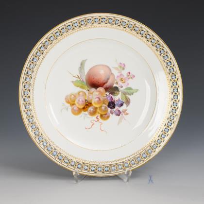 Runde Fächerplatte mit Obsmalerei,