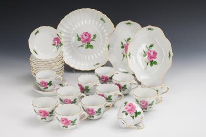 12 + 14 pieces of a coffee and tea service "Red Rose". Meissen.