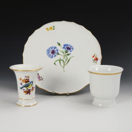 Cake plate and 2 vases. Meissen.