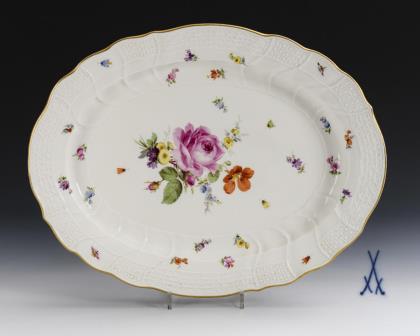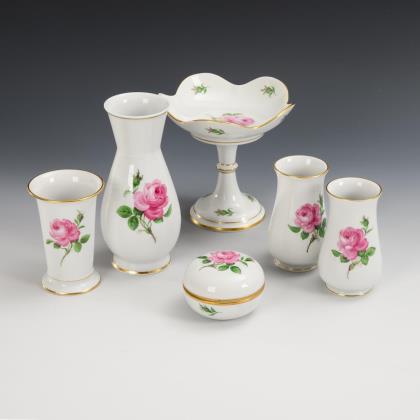 2 oval plates, 2 plates and 3 saucers "Red Rose". Meissen.