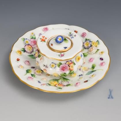 Centerpiece with flower and insect painting. Meissen.