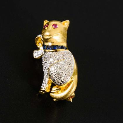 Cat" brooch/pendant with diamonds, sapphires and rubies.