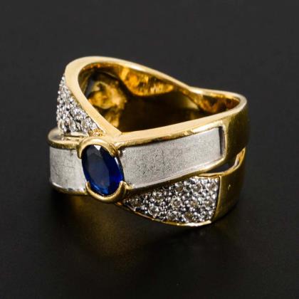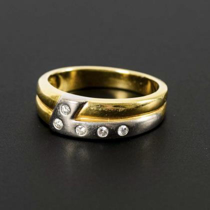 Two-tone ring with diamonds.