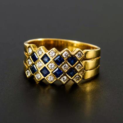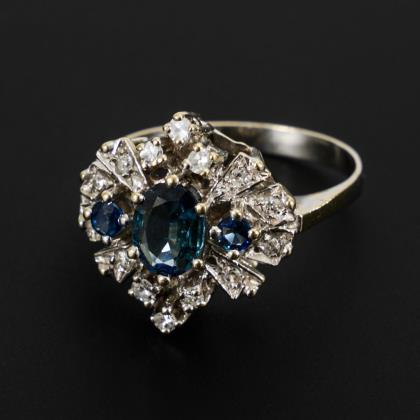 Ring with sapphires and diamonds.