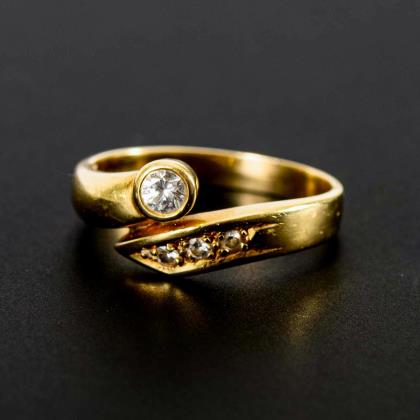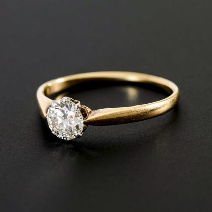 Ring with brilliant-cut diamond solitaire.