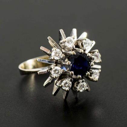Ring with sapphire and diamonds.