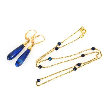 Necklace and pair of earrings with lapis lazuli.