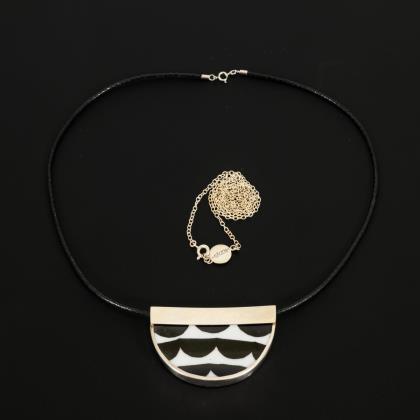 Swedish designer pendant with leather strap and chain.