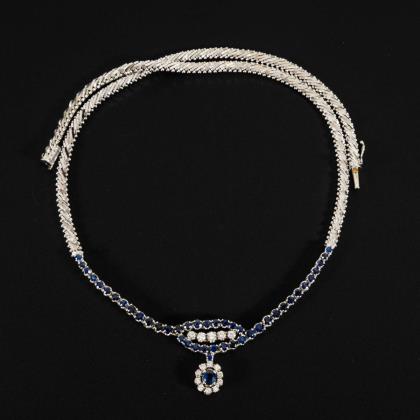 High-quality necklace with sapphires and diamonds.