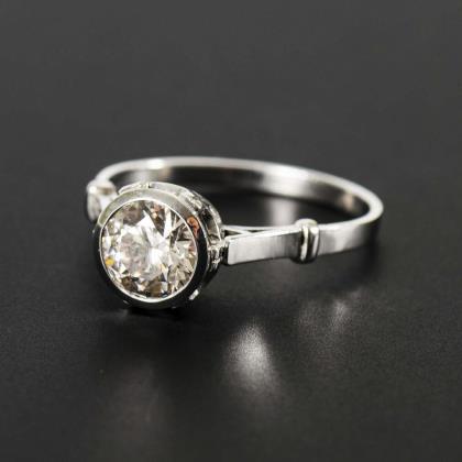 Modern ring with brilliant-cut diamond solitaire.