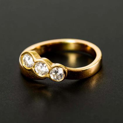 3 chatongefasste Brillanten zwischen mittlerer Schiene.