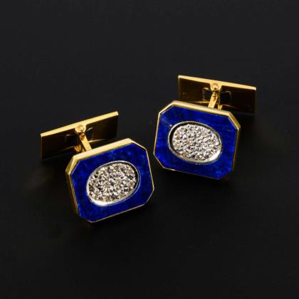 Elegant pair of cufflinks with lapis lazuli and diamonds.