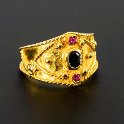 Ring with sapphire and rubies.