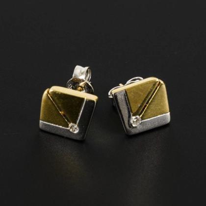 Modern pair of stud earrings with diamonds.